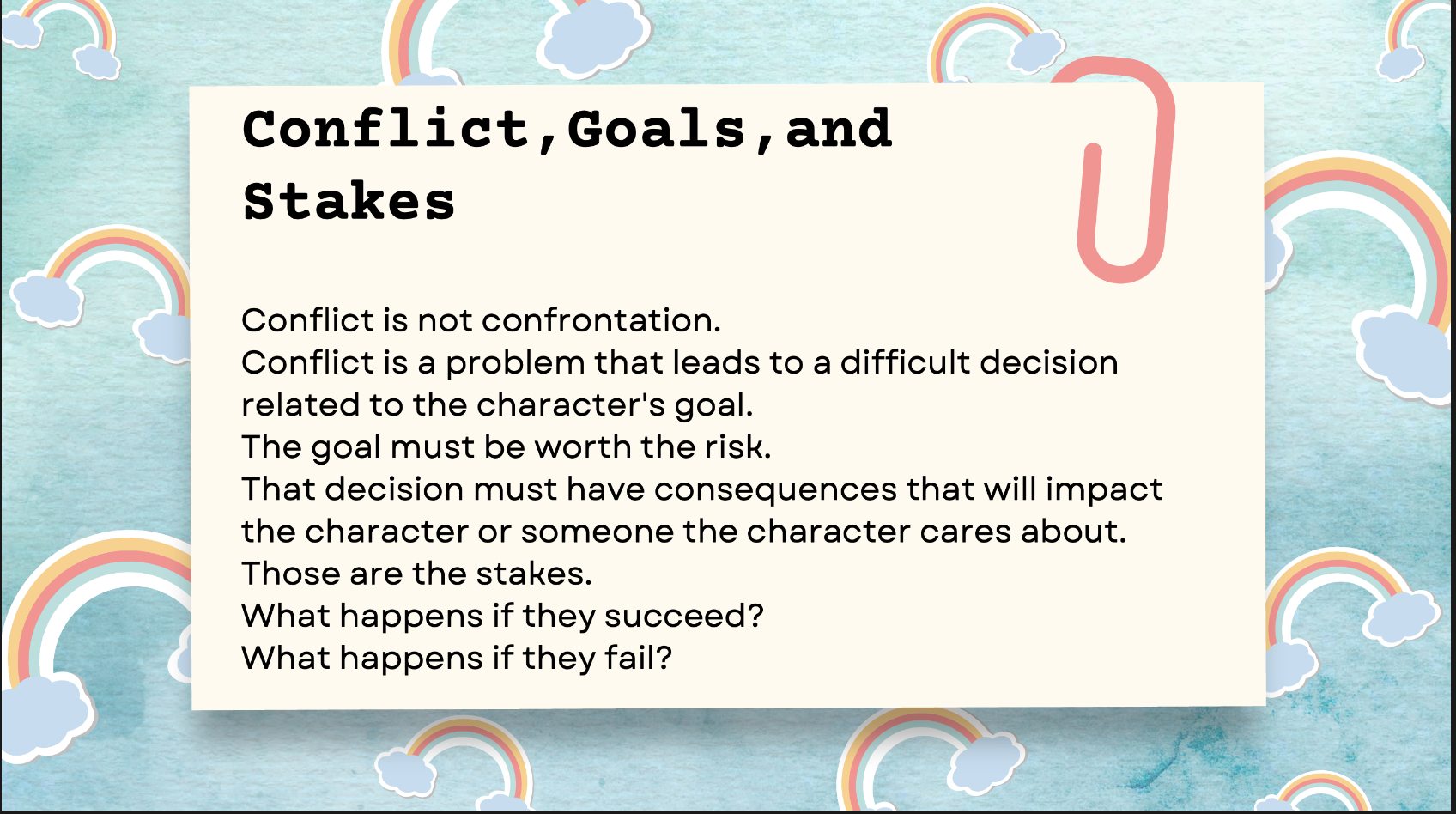 Conflict, Goals, and Stakes